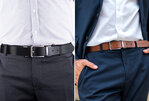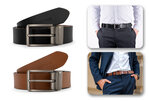 Élégante ceinture en cuir à boucle réversible noir et cognac 2-en-1